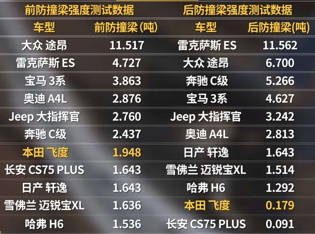 不过即使本田飞度的后防撞梁最大承受压力这么差,但是也不是垫底,是倒数第二。倒数第一是长安CS75 PLUS,后防撞梁能够承受的压力仅为91公斤,这个成绩令人瞠目结舌,后防撞梁几乎等于摆设。