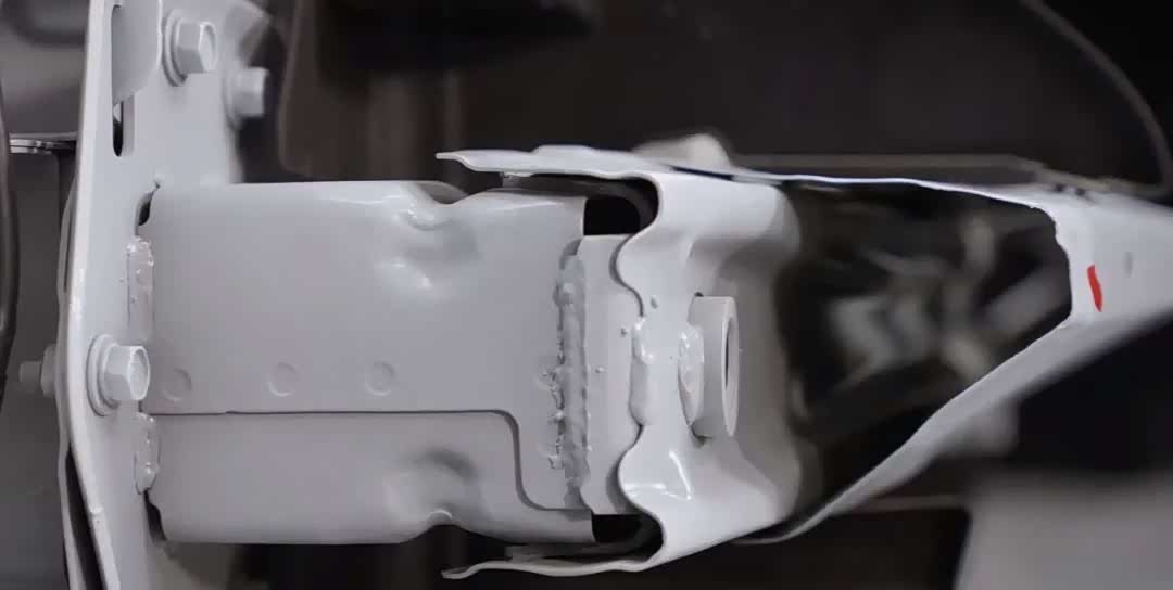 而后防撞梁的表现就让人比较吃惊,飞度的整个后防撞梁的厚度只有0.95毫米,连1毫米都不到,后防撞梁能够承受的最大压力仅为0.179吨,也就是179公斤。这个成绩不能说很差,可以说是非常的差,一个力气稍微大一点的成年男性都能使这个后防撞梁变形。