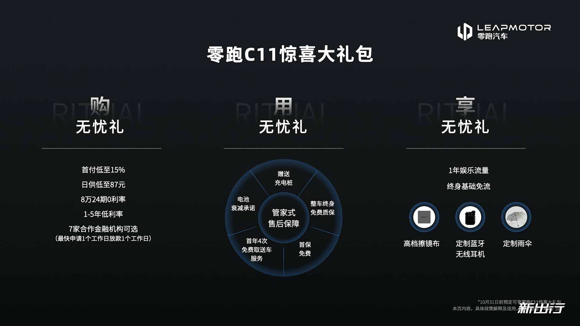 从今晚公布的各项用户权益来看,零跑 C11 还是很实在的,没有对不同的版本做出有区别的权益政策,这样的话选起来也比较简单。