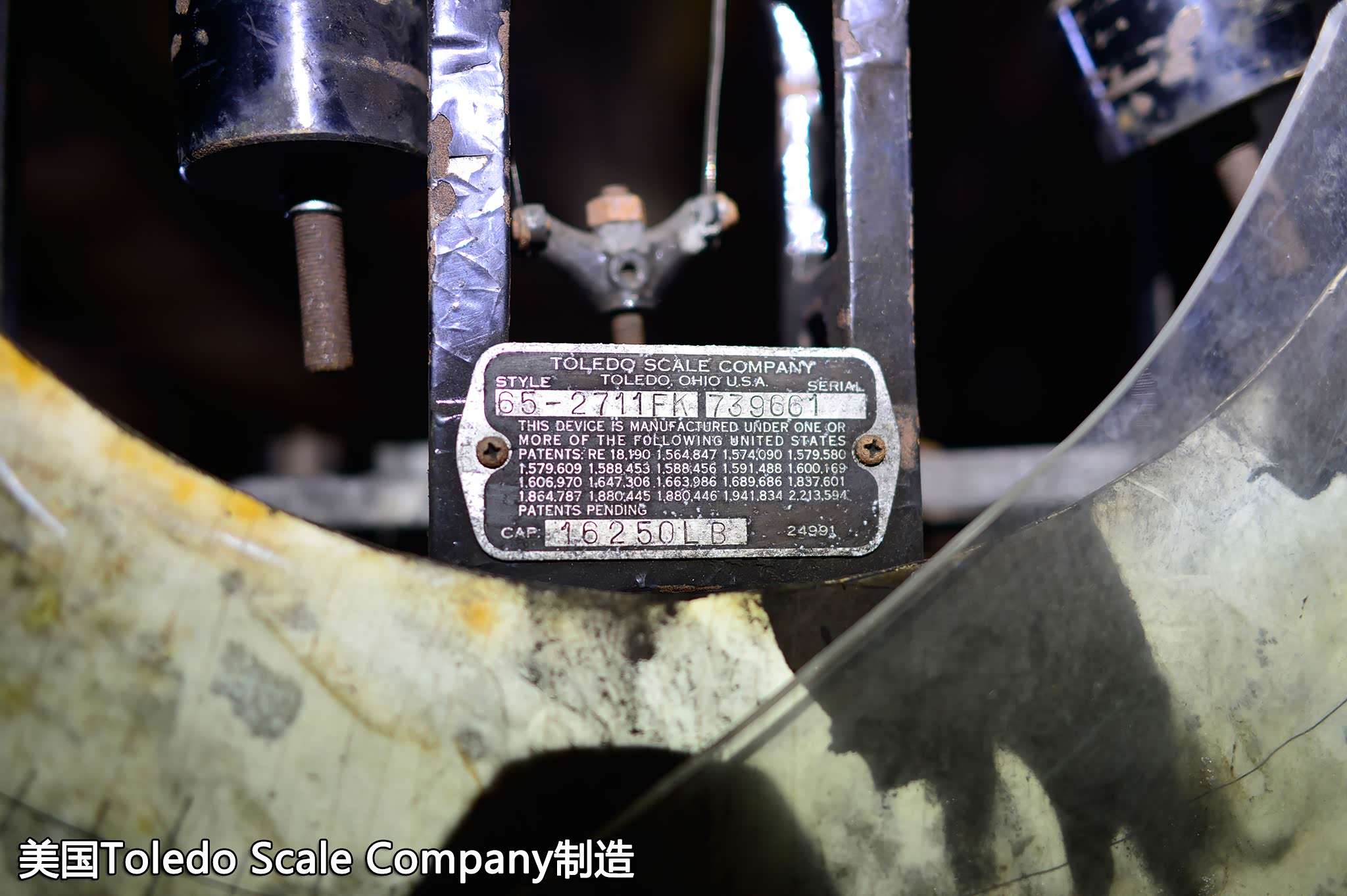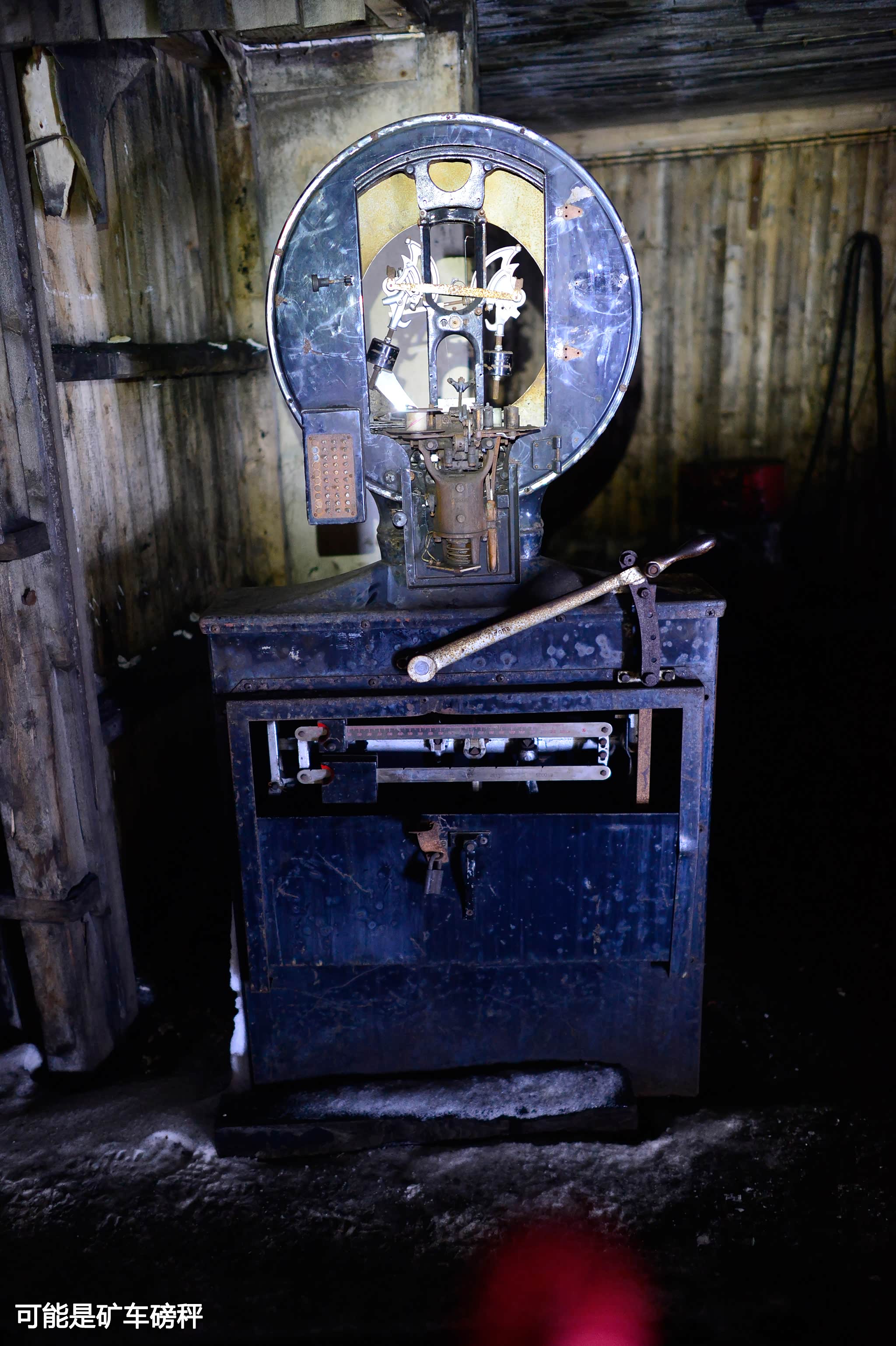回到黑暗处,一台近人高的仪器吸引了我,标签上显示是美国Toledo Scale Company制造,看编号似乎是1965年制造,我感觉这是给矿车称重的磅秤。回国后上网搜索发现这家公司创立于1901,经过多次合并,现在这家名为METTLER TOLEDO(梅特勒-托利多)已经成为全球领先的精密仪器及衡器制造商,总部设在瑞士,并在纽约证交所上市。