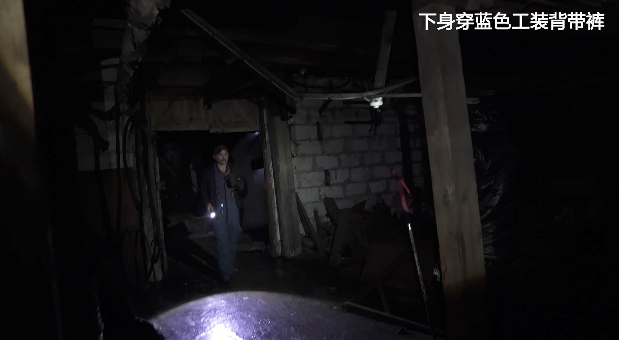 那里是一个Y型岔口,左边不远已经被坚冰封住,一个男人突然出现在右边岔道,很诡异的是他下身穿件蓝色工装背带裤,上身仅套了很单薄的格子衬衣,并没有像我们一样穿了较厚的保暖衣物,要知道这里的外界温度至少有零下十几度,没有阳光照射的矿洞内格外湿冷。如果是在尚未废弃的年代,那这身极像工人的打扮无疑是最合适的,但现在….我一时之间竟不知道该说什么,脑海不停地闪回The Texas Chainsaw Messacre(德州电锯杀人狂)、Wrong Turn(致命弯道)这些恐怖片的名字,一时也想不起来哪部里面有工装杀人狂,嘴里不由自主地说出了“你在这里工作吗?”说完自己都觉得不对了,这里已经废弃了快50年了。
