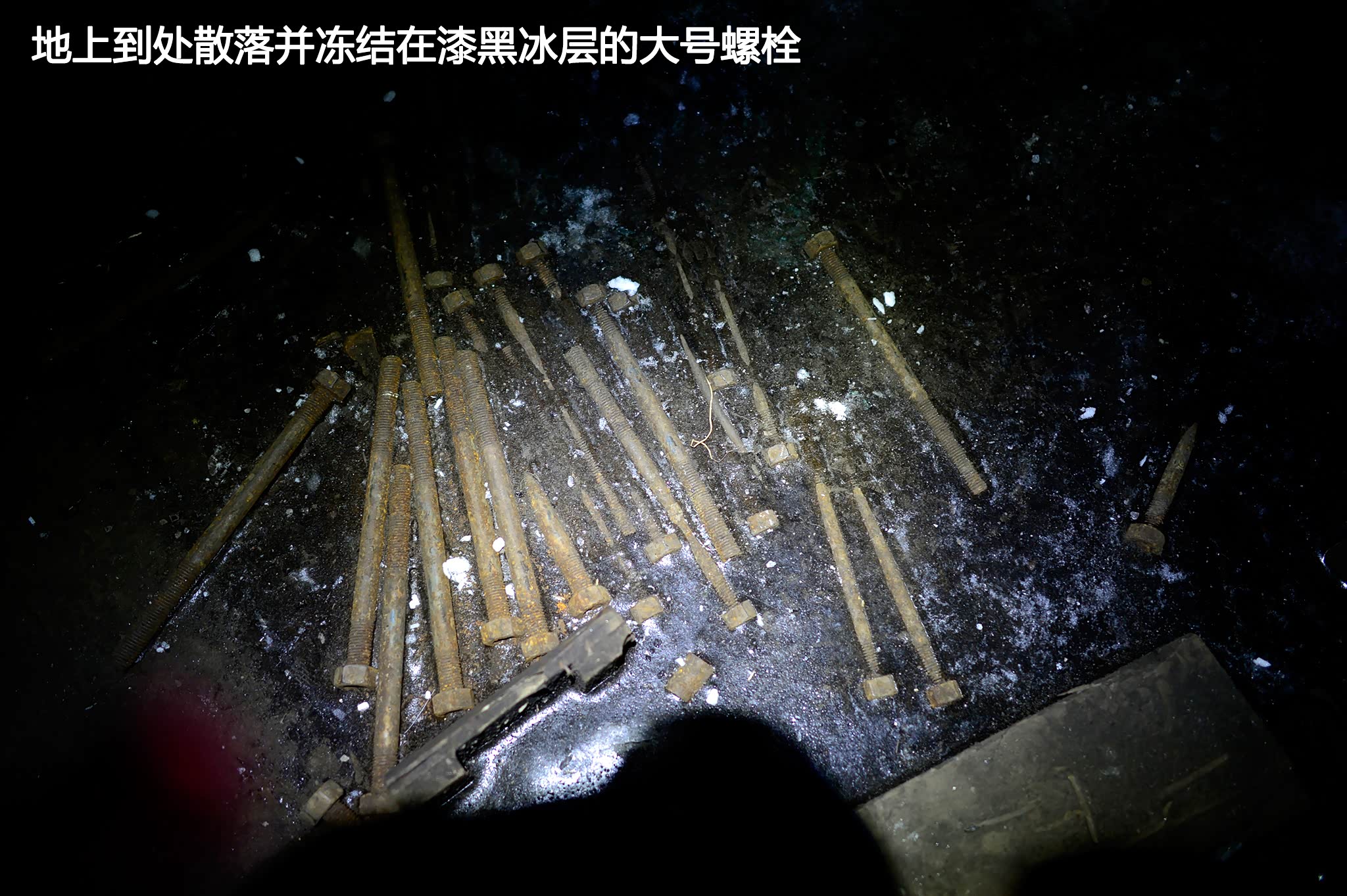 工装男人说他是旅游者,但除了没穿外套总觉得还有哪里不太对,突然我观察到,他似乎对这里非常熟悉,这里到处笼罩在黑暗中,通道顶部许多地方被坚冰挤碎变形,地面被湿滑的坚冰所覆盖,到处散落各种木条,有些还带有钉子。作为初来这里的外来者,总是会慢慢探索,但这个男人却大踏步地到处走,从不担心滑倒或头部撞到哪里,而且对附近几个房间路线非常熟络,完全不像是旅行者,这是我和李佳一直百思不解的地方。