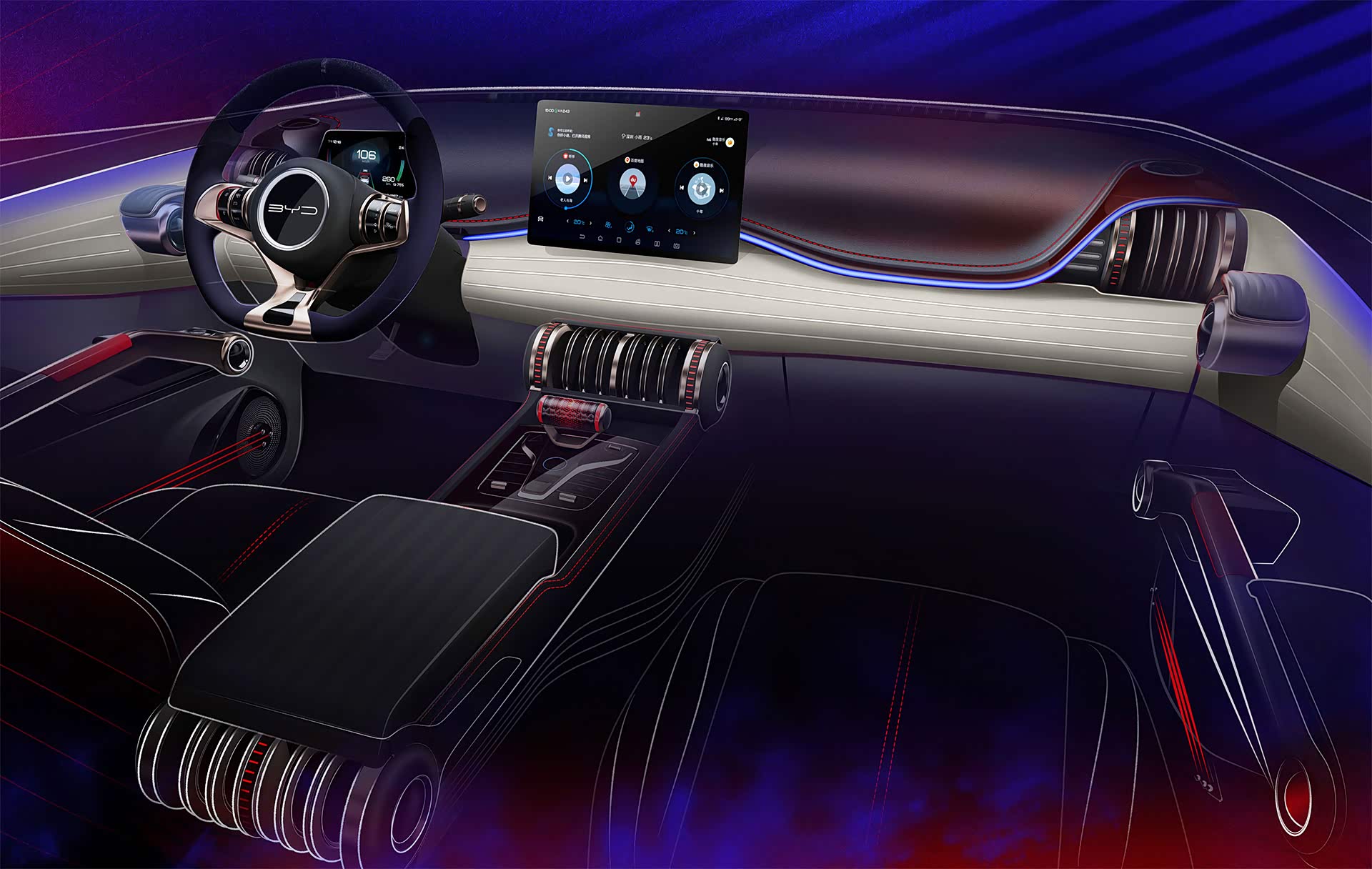 比亚迪元PLUS内饰预告图,采用律动设计理念,心动了