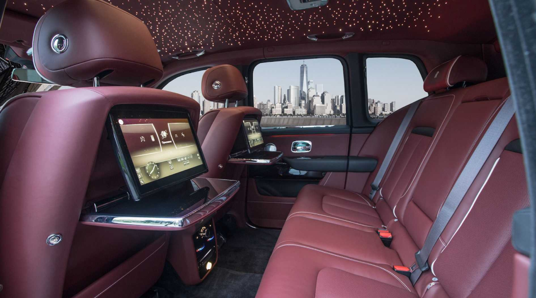 然而让人意外的是,这么一台看似冰冷的移动“堡垒”,在其内部却是另一番天地。克拉森为装甲版库里南定制了独家高端内饰,棕色真皮包裹的座椅尽显奢华;后排配备了两个独立的小桌板和娱乐系统,可供老板们消遣;而车顶的劳斯莱斯“流星顶”,则是顶级奢华的象征。