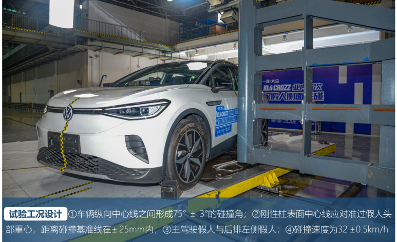 2021年10月10日,中国汽车工程研究院股份有限公司(简称“通用技术中国汽研”)进行了行业内首次双假人侧面角度柱碰试验,试验车型为一汽-大众ID.4 CROZZ。