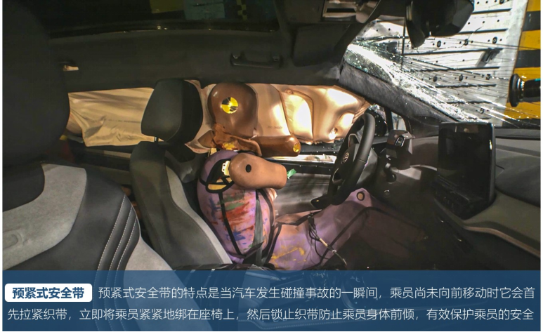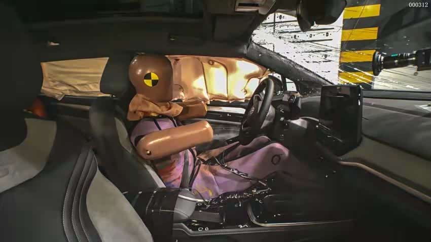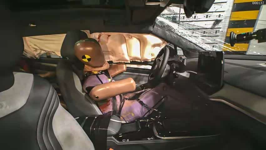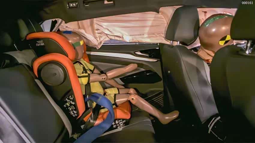 之所以能够有如此优秀的伤害值表现,这就与优秀的车身结构设计以及完善的约束系统配置不无关系。车身结构保持完整、吸收动能,约束系统展开及时、覆盖到位,进一步减缓伤害,假人的伤害也因此极大降低。