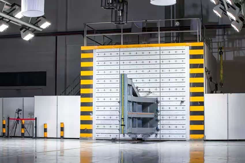 本次试验为业内首次新能源双假人侧面柱碰,试验车辆纵向中心线之间形成75° ± 3°的碰撞角,以32km/h的速度侧面撞击固定桩,相当于是撞击车辆最薄弱的地方(新能源汽车电池包的地方),通过车辆变形情况、假人伤害表现以及电池情况,验证整车、电池包的安全性能。