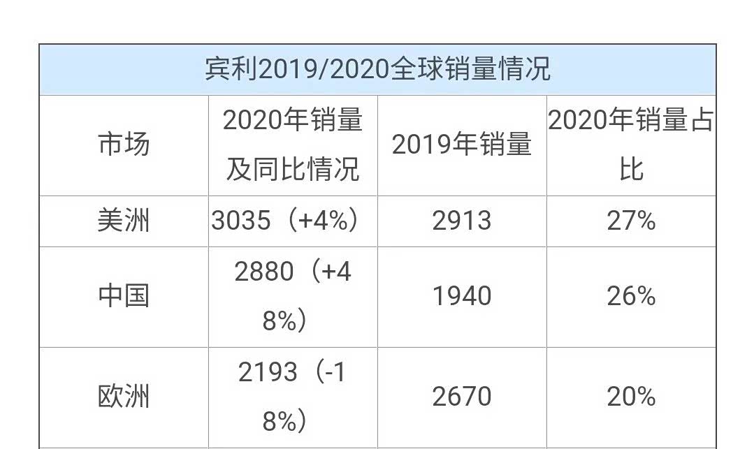 2020年,宾利在中国的销量达到2880台,同比增长48%,全球排名第二(美洲第一);