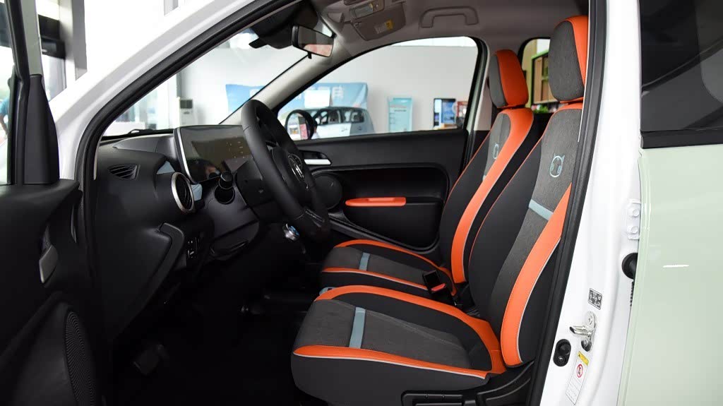 与外观不同,新款欧拉黑猫的升级主要放在车内,高配版车型上增加了大尺寸的双联屏,其他车型则与老款一样,并且新款在细节处加入了讨好软妹子的设计,比如空调出风口上的猫耳朵、方向盘和座椅上的卡通形象,细品到的都是可爱。配置方面高配版车型新增了车道偏离系统、自动驻车等功能,其他部分的改变则主要集中在智能化的升级。