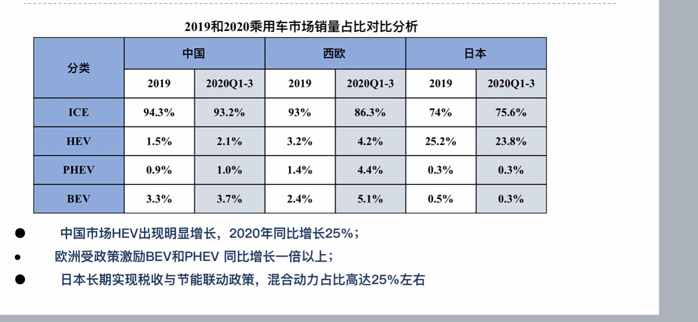 1): 国家政策导向会兼顾新能源纯电动汽车和节能混动汽车。 这和之前较为激进的弯道超车思路有了较大的理性回调。国内PHEV, 48V弱混➕小排量高效发动机仍较长的生存空间, 这符合中国幅员辽阔, 使用场景多样和复杂的现状, 也能维持刚刚发展起来的国产汽车工业和产业链的稳定性。 尤其是在电池原材料全球供应,大规模二次回收和无害化处理,电池技术突破等几个行业问题没有大的改变的情况下, 这样的思路较为理性。