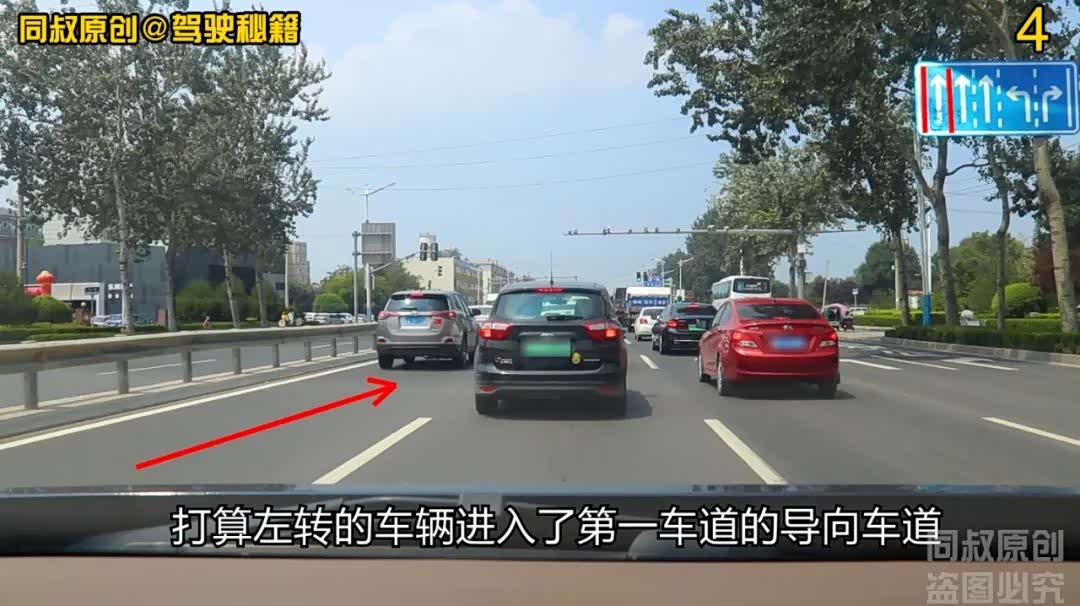 假如你没有看标牌的习惯,恰好又错过了导航的播报,那就很容易出错了,通常情况是,直行车辆进入了第四车道导向车道,打算左转的车辆进入了第一车道的导向车道。或者是还没有进入导向车道实线区域,却因为车流量太大来不及变道。