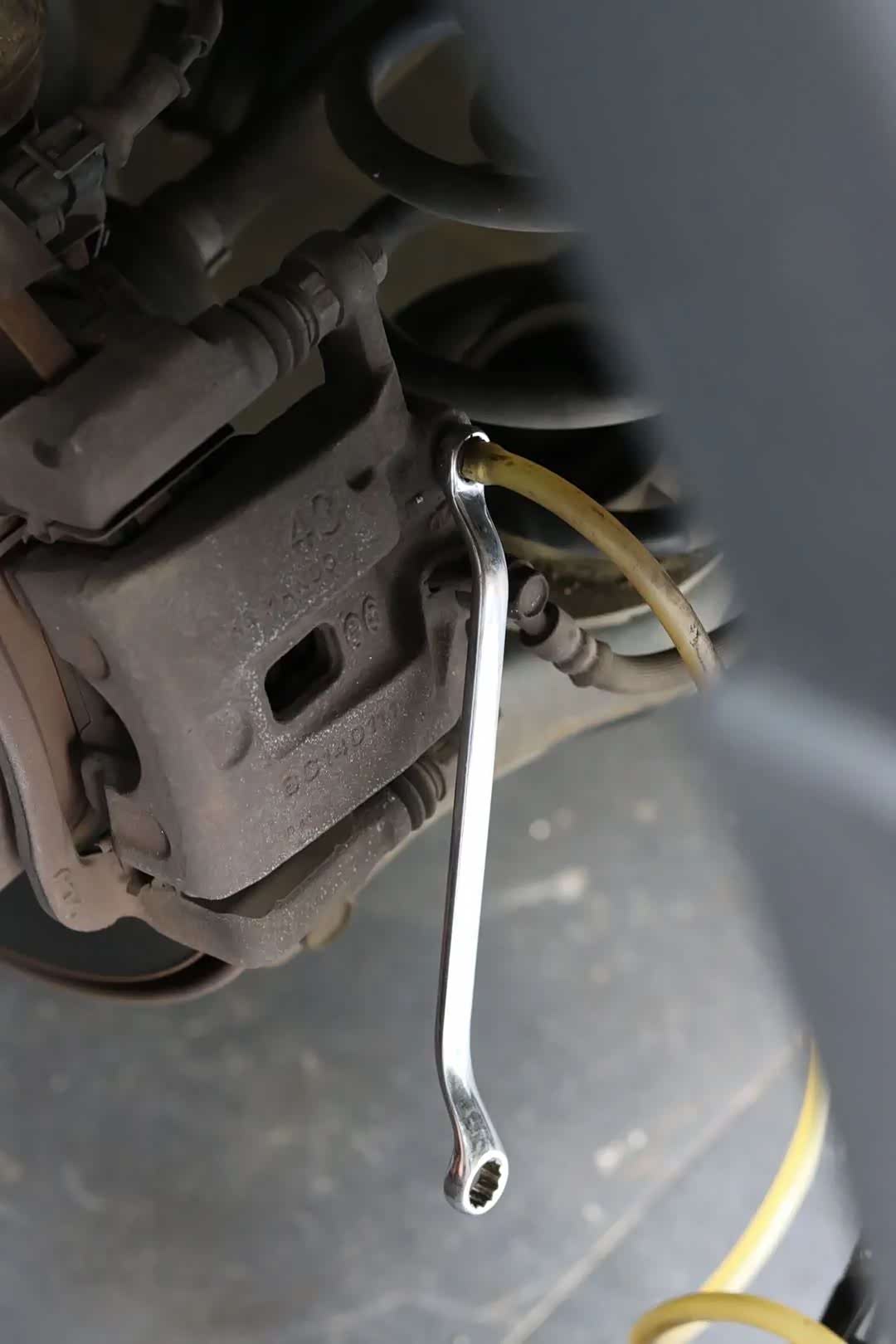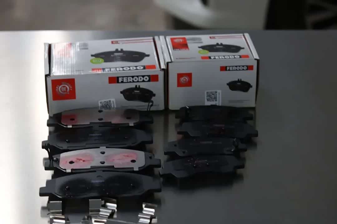 路试刹车系统下脚稍微要深一点,检查制动盘状态挺不错,制动皮磨损有点厉害,所以更新一组菲罗多刹车皮。
