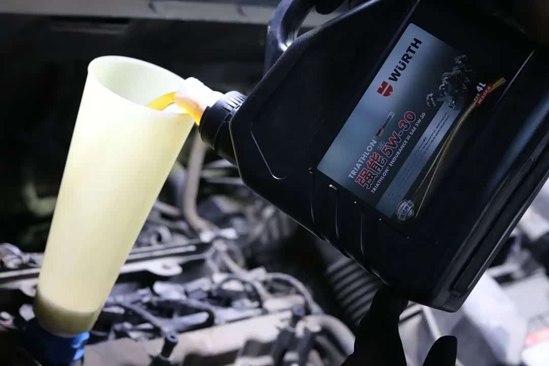重新加入新机油,这车之前保养也挺随意,但大件都没问题,我们这次养护做细一些,应该会有不错的改善。