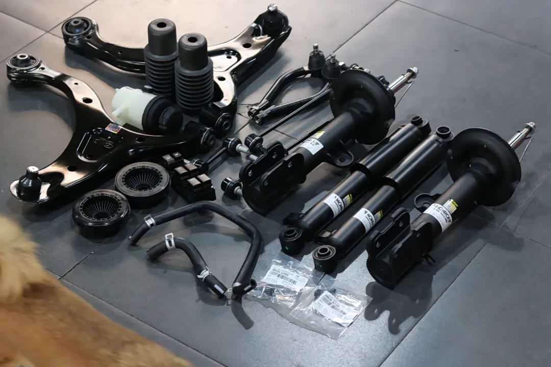 避震器、摆臂、拉杆、支臂,防尘套做好拆卸更换。