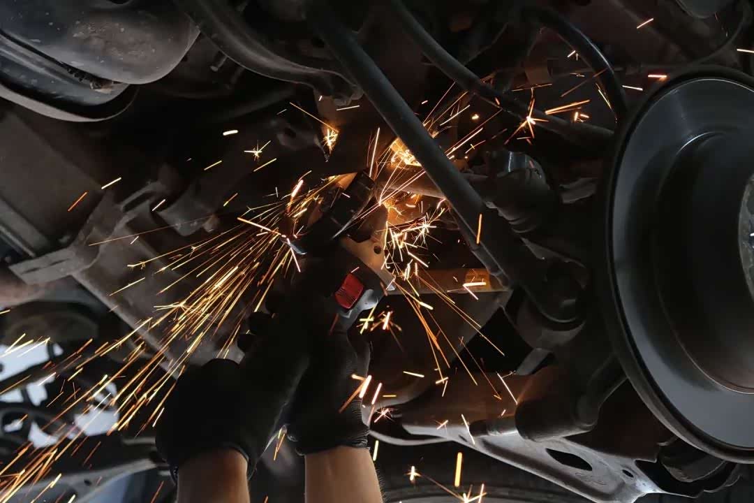 特别是那些摆臂带偏心螺丝的,长时间没有调整养护过,全部锈死了,只能切割更换,真是费了大劲。