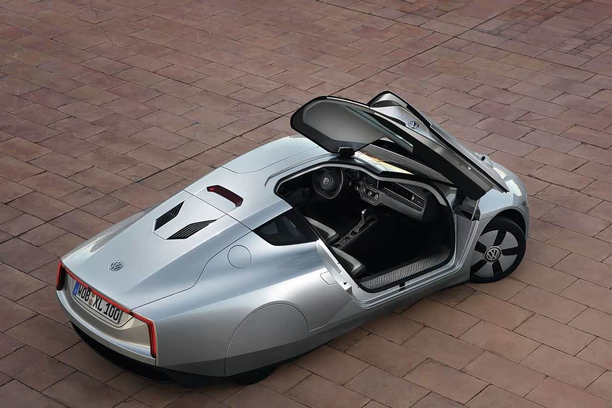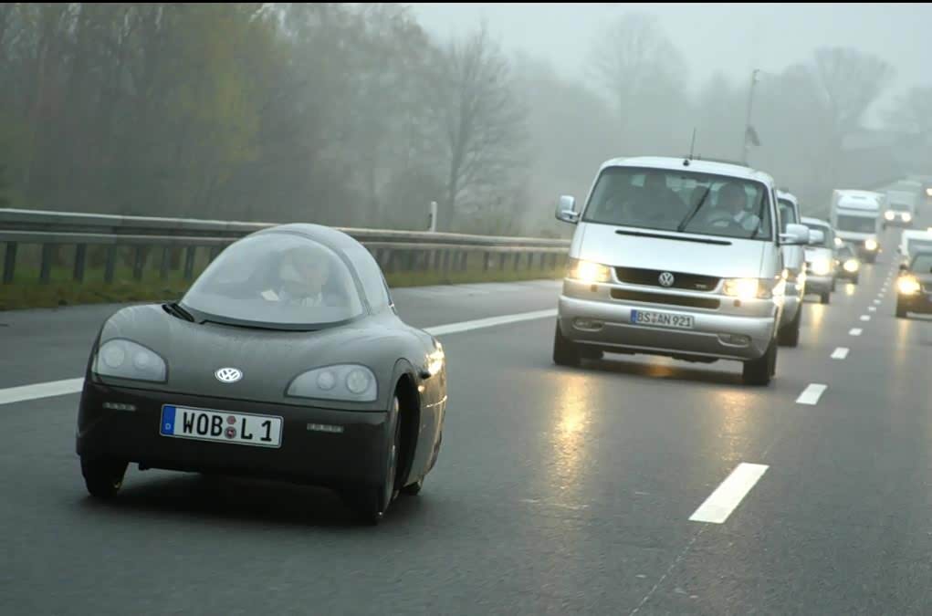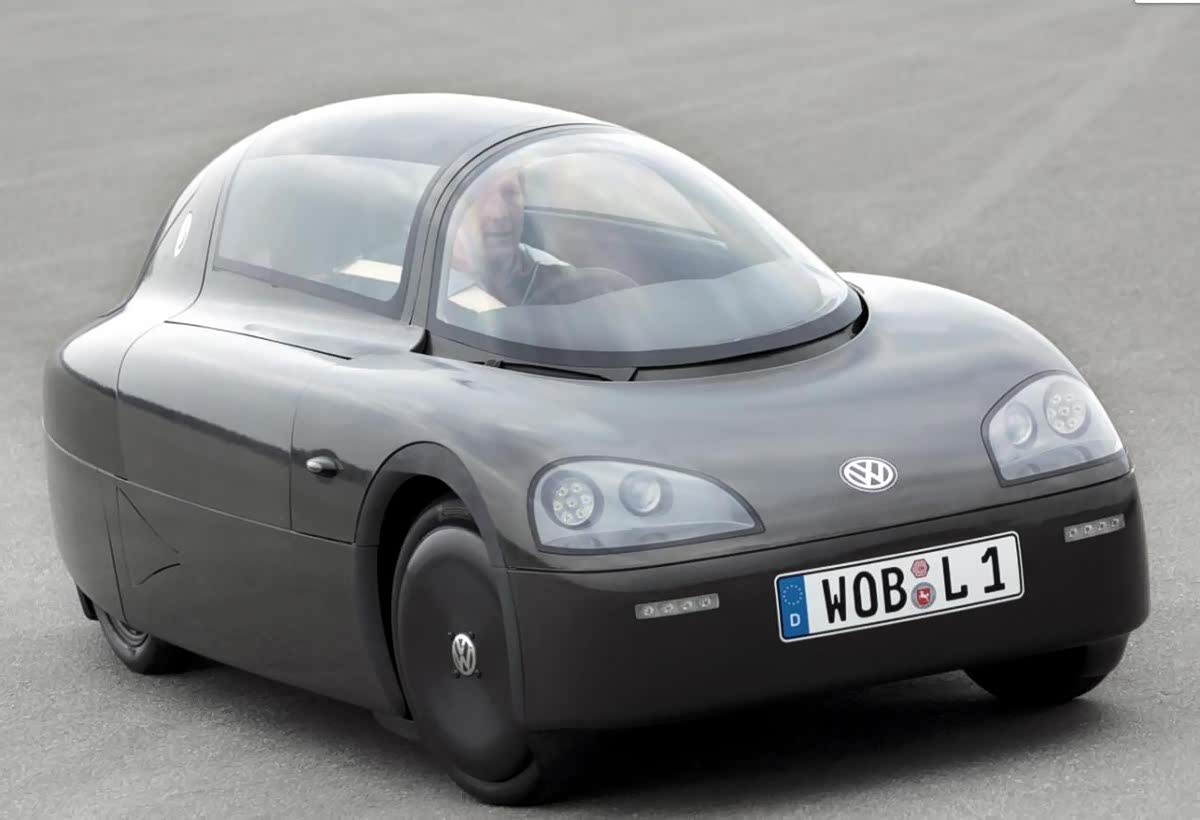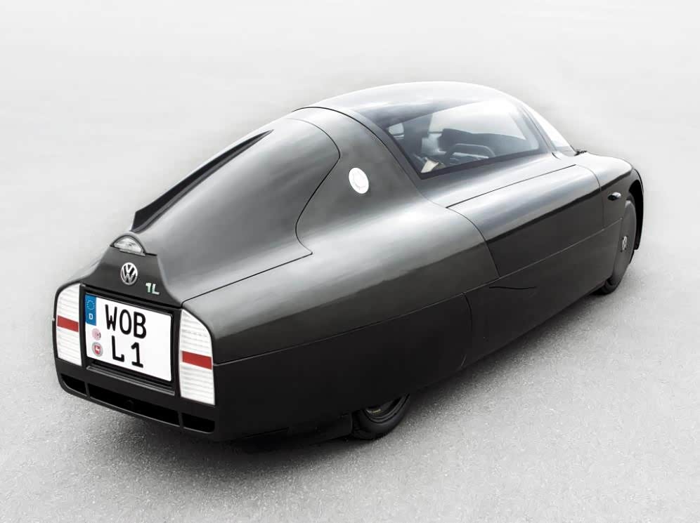 到2012年,大众正式将这款车量产,命名为XL1,虽然加了电机,但设计理念与L1基本相同,0.8L两缸柴油机最大功率47马力,配合27马力的电机,座舱变为并排,但远窄于普通车,风阻系数0.189,也是最低的量产车,虽然油箱只有10L,但续航也超过400公里,混动模式油耗1L,纯燃油模式油耗2L,媒体市区开空调实测2.3L,成本接近电动车。