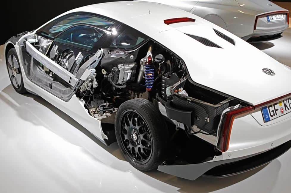 其实早在21世纪初,两大汽车巨头--通用和大众就开始研发百公里油耗为1L的车型,最终大众在2002 年 4 月向公众展示了1L概念车,第一就是减轻重量,这款车在镁合金副车架上使用了未上漆的碳纤维蒙皮。单个部件的重量很轻,包括发动机、变速箱、悬架、车轮(碳纤维)、制动器(铝)、轮圈(钛)、轴承(陶瓷)、和符合材料内饰等。整车重量只有290 公斤。