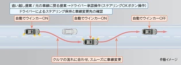 此外,新车还针对高级驾驶辅助系统Lexus Teammate进行升级,包括增强型自适应巡航控制系统ACC带弯道减速、辅助变道功能LCA、增强型预碰撞安全系统PCS带紧急转向辅助系统ASA及主动式安全带和行人警示系统、前方交通穿行警示系统FCTA等。辅助变道功能LCA在变道开启转向灯后,变道辅助系统将首先进行环境的判断,在符合变道条件时,车辆开始往目标车道变道。