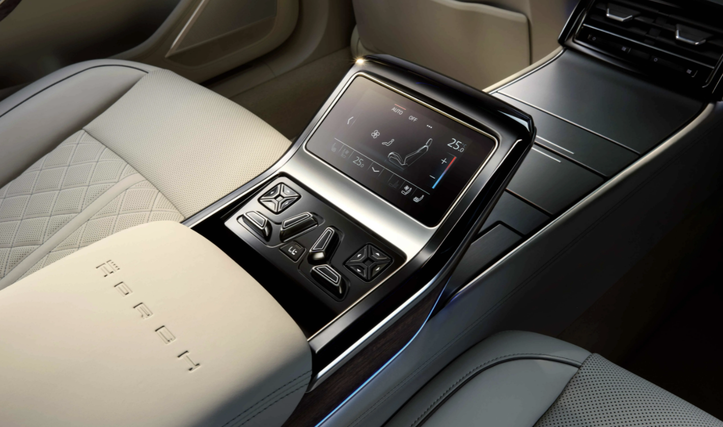 第二排空间无疑是奥迪A8L Horch体现其“现代豪华”、“延展空间”设计理念的最佳位置。在这里,独立的VIP席将获得豪华舒躺座椅(通风、加热、按摩)、智能触控系统、娱乐信息显示屏等配置,升级的歇脚板还带有足部按摩功能,让乘客可以身心放松。