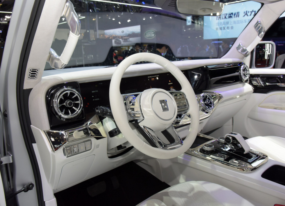 内饰氛围确实更加高级,对比普通版本坦克300纯黑色内饰,赛博坦克采用的是纯白色真皮面料包裹,再加上恰到好处的金属点缀,确实有点奔驰巴博斯高端改装车型的味道了,如果盖住车标,还真以为坐进了奔驰巴博斯,在外行眼中,这套内饰绝对是上百万的气场。