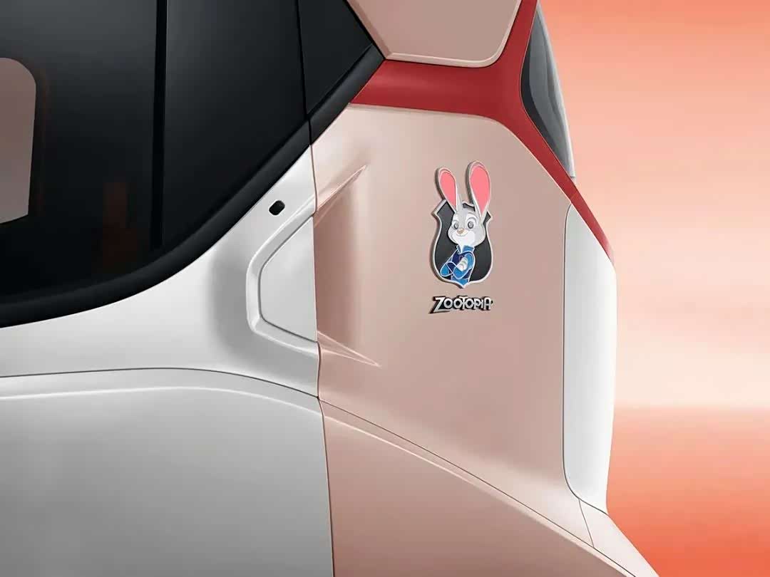 而作为特别版车型,疯狂动物城限定款拥有与动漫人物风格对应的特殊配色,分别为绿车身搭黑车顶以及白车身搭粉车顶,具有很高的辨识度。此外,新车还在车辆前翼子板处有迪士尼限定徽章,在车门后方还有Judy和Nick的头像,颇为符合当代年轻人的审美需求。