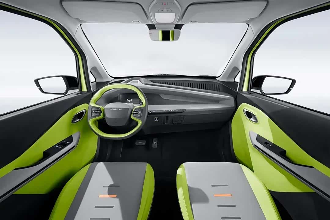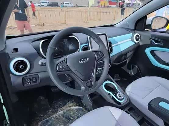 内饰部分维持了现款的设计方案,整体以黑/灰白色为主,配合撞色的细节边框,新增了薄荷绿、阳光橙、流樱粉、荔枝白和柠檬黄5种双色搭配设计。在一辆微型车上,整合有10英寸的超大中控台液晶大屏、皮质多功能三幅式方向盘和液晶仪表屏,中控大屏还自带有高德地图、考拉FM和酷我音乐,能够支持百度Carlife和4G网络,功能已经足够丰富了。