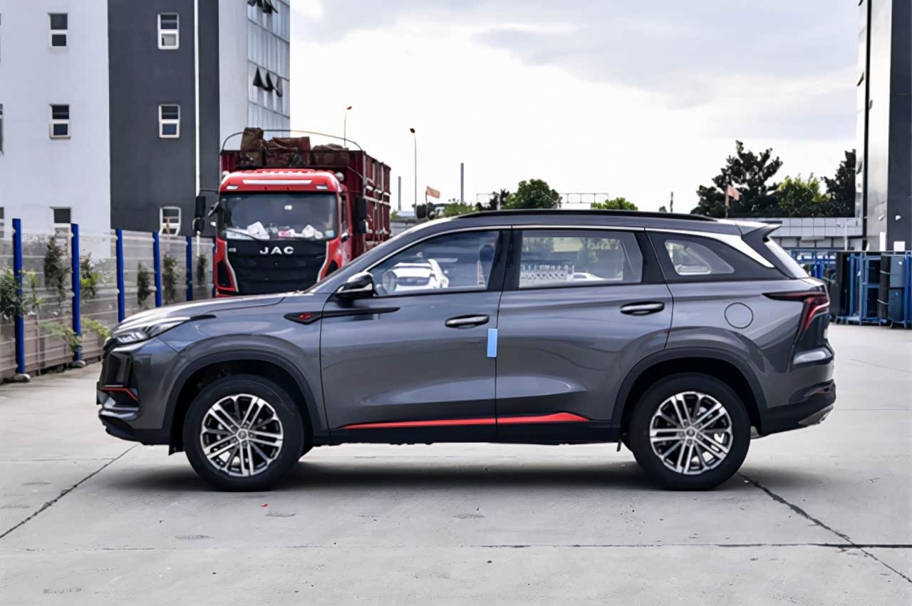 由于是中期改款车型,新款长安CS75PLUS的尺寸参数变化不大,它的车身长宽高分别为4700mm、1865mm、1710mm,轴距依旧是2710mm,只有车身长度增加了10mm,因此新款长安CS75PLUS的空间感受和现款车型差别不大。侧面造型的风格和现款车型一脉相传,D柱独具特色的折弯装饰饰条营造出悬浮车型的视觉效果,后视镜下方的品牌logo得到了保留,而下裙线处的红色装饰条改成了更加内敛、低调的银色,结合全新设计的铝合金轮毂,看上去更加的大气。