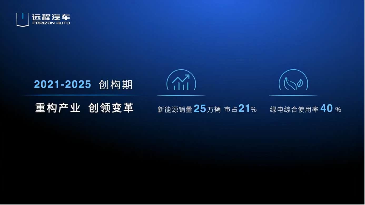 在发布会现场,吉利商用车集团CEO范现军还公布了远程汽车2030年的战略目标:“第一阶段2021-2025年进入“创构期”,实现新能源销量25万辆,市场占有率21%,绿电综合使用率达到40%。第二阶段2026-2030年进入“共赢期”,新能源销量57万辆,市场占有率20%,整车全生命周期碳减排90%。”