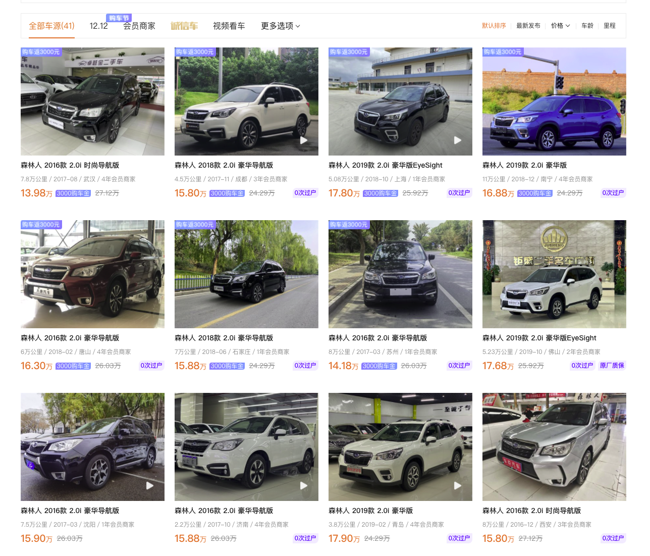 第一款:斯巴鲁森林人(二手车龄3-5年)