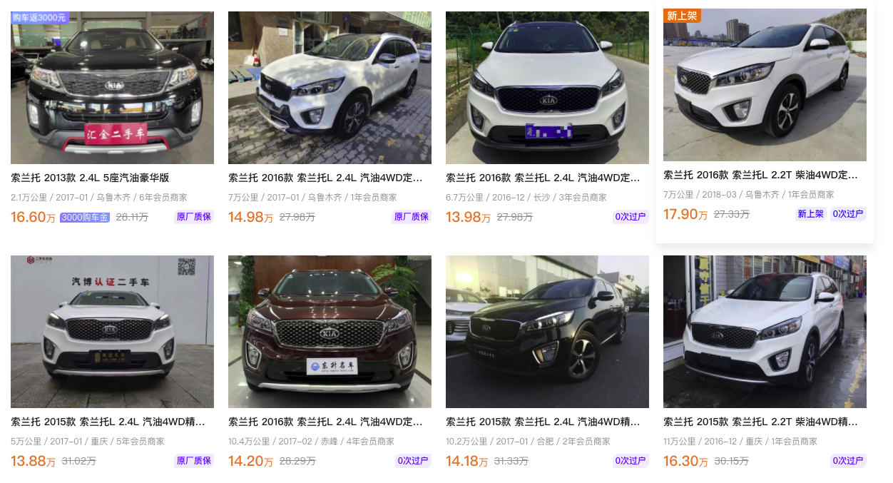 第二款:起亚索兰托(二手车龄3-5年)