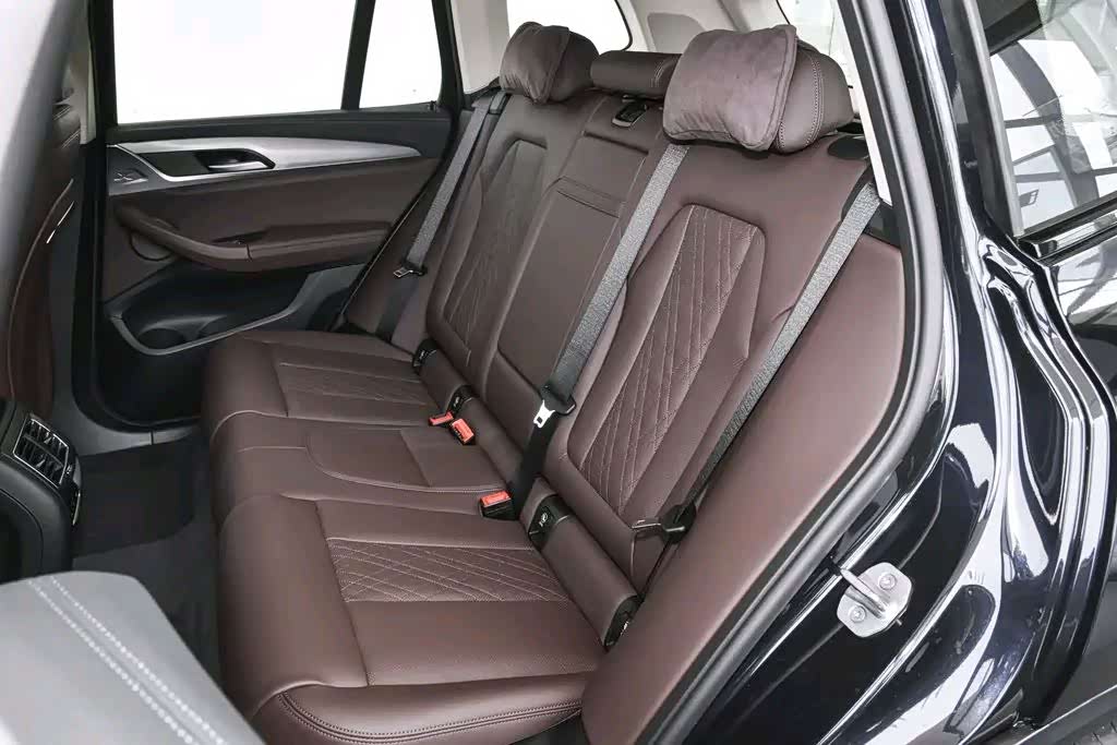宝马ix3内饰中控台布局简约耐看,车厢内使用了很多软性材质覆盖和皮质包裹,经典的三幅式多功能方向盘大小适中,握感极佳,12.3英寸的全液晶仪表与12.3英寸悬浮式触控大屏提升了科技感,中控大屏内置宝马最新的iDriver7.0车机系统,具有语音识别控制、用户还可以使用QQ音乐、喜马拉雅音乐、还支持无线Apple CarPlay及百度CarLife功能,并具有车联网、OTA升级等功能,甚至还与腾讯、阿里合作接入更多功能和场景。座椅采用仿皮材质包裹,副驾驶位配备了腿托,前后排座椅均支持座椅加热功能。后排座椅靠背对腰部有较强的贴合度,同时坐垫长度适中,对大腿有良好的支撑性。