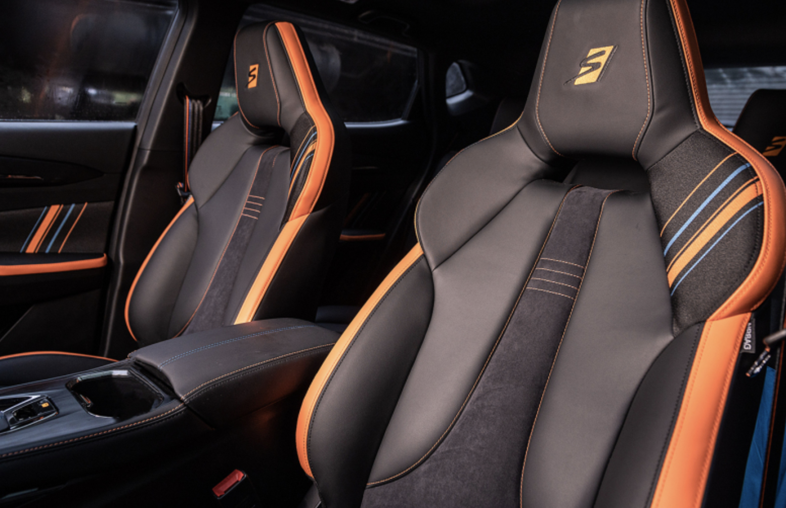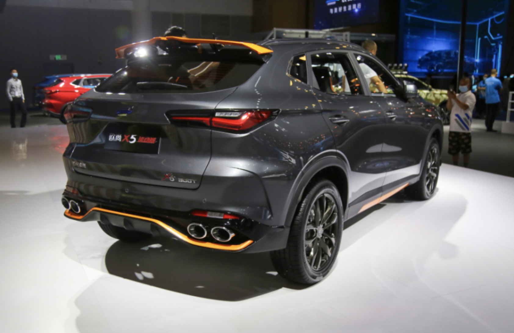 车尾部分,层次感较为分明,配备了橙色的后扰流板与橙色元素点缀的运动后包围,并匹配了双边共四出的排气布局,整体看上去非常的运动时尚。