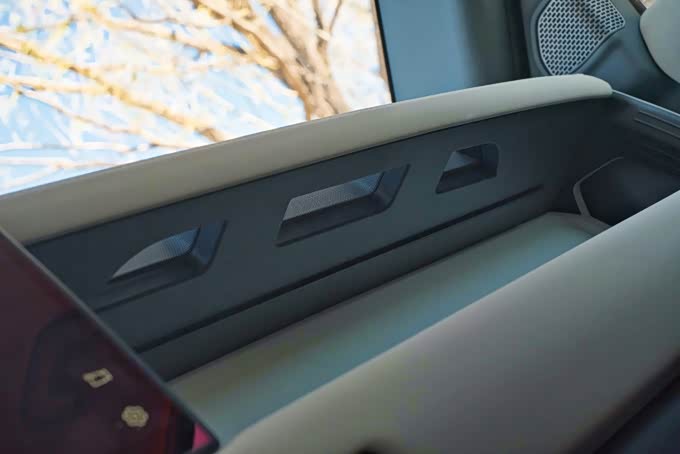 2、除去我们上面提到的硬塑料、铆钉、防水塑胶地板,在这台车的内饰还能看到哑光银色的合金、黑色的软质橡胶、抛光金属面板等等材质,大概粗略的数了一下整个内饰使用了将近10种不同的材料,而每一种不同材质带来的独特手感也是该车内饰最“好玩”的一大亮点。