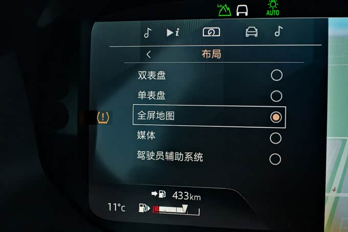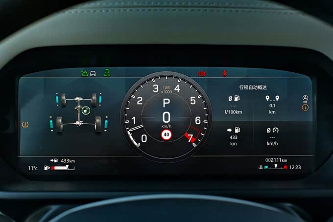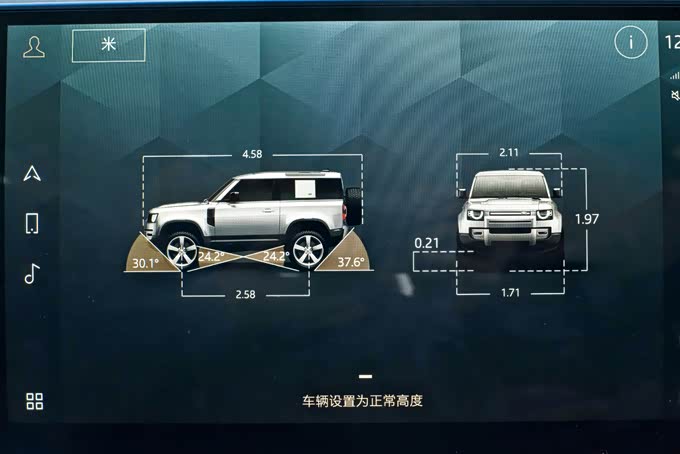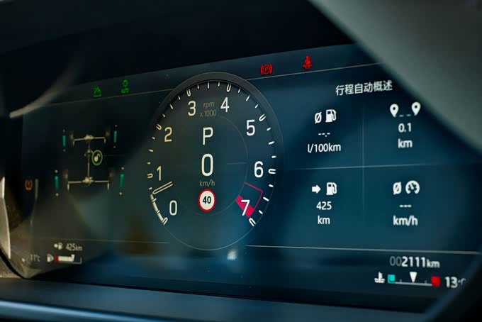 1、路虎卫士90配备了12.3英寸的全液晶仪表盘,显示方面提供了单仪表、双仪表、全屏幕地图显示等不同风格的样式,同时仪表盘可以显示的功能也非常丰富,包括四驱系统、地图、行程概要、媒体等等,各个界面之间的切换也并不复杂,通过方向盘上的多功能按键即可操作,不过在操作过程中偶尔会出现轻微卡顿或反应慢的情况。