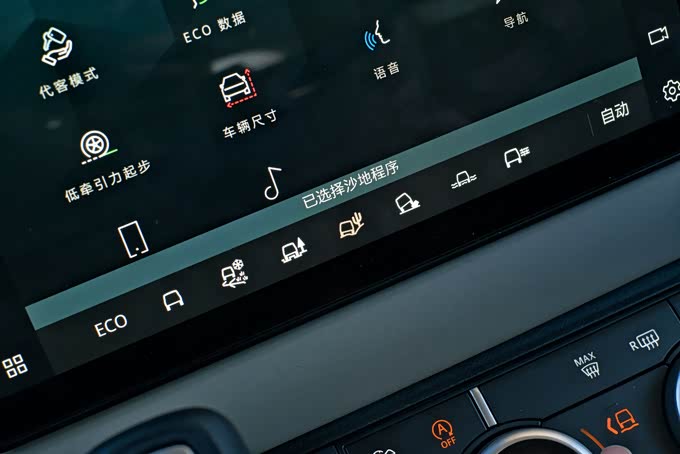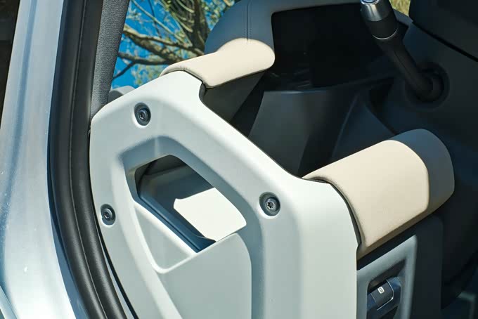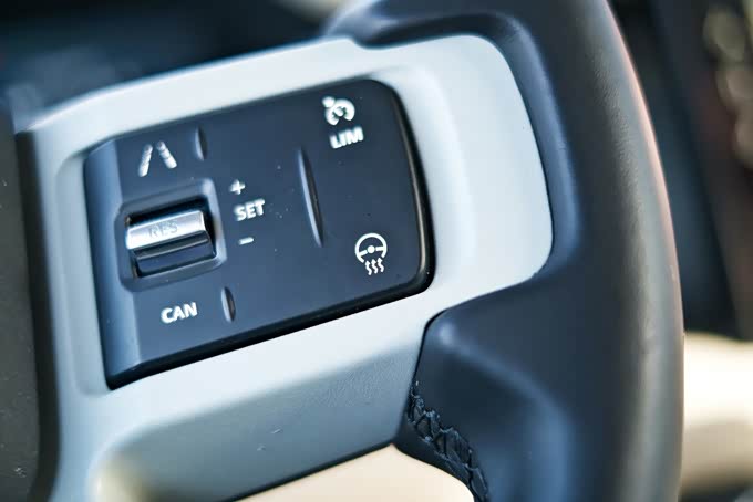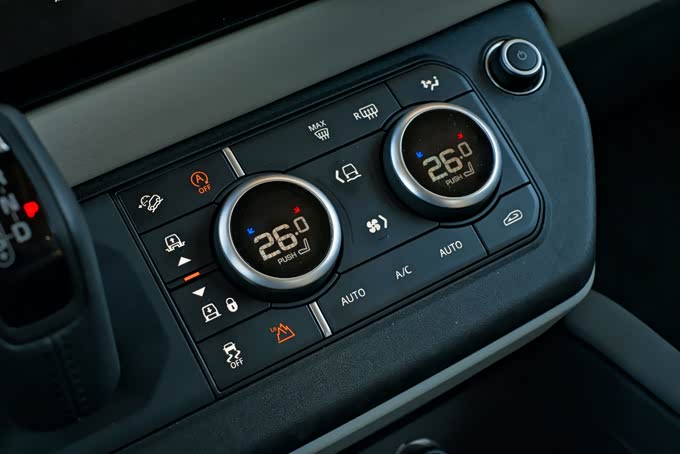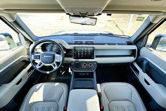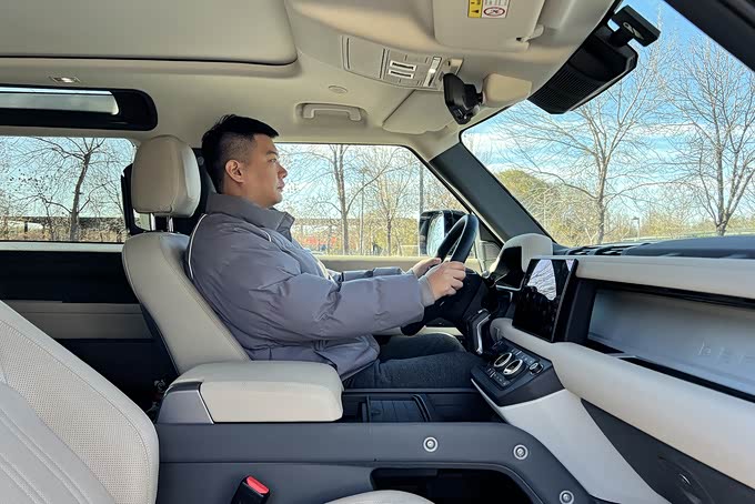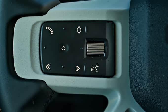 舒适性配置方面,该车前排座椅配备了加热、通风功能,同时支持多项电动调节,另外路虎卫士90作为一款双门车型,考虑到后排乘客进出需要折叠前排座椅的情况,该车的前排座椅肩部配备了电动调节功能,但是实际使用过程中会发现该电动调节并不事一键式折叠,需要一直按住操作,不够便利。