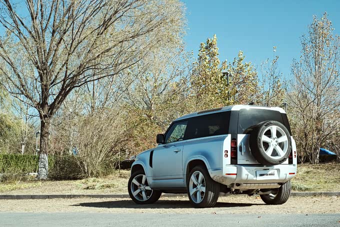 2、为了进一步体现个性化和时尚感,全新路虎卫士还推出了带有车顶行李架、侧面折叠梯以及储物箱的外观套件,遗憾的是本次评测的车型并没有配备该套件,虽然说这套套件对于城市道路甚至长途旅行的实际用处不大,但确实起到了增加野性的装饰作用。不过之前我们试驾过配有该套件的卫士110版本车型,发现右侧的储物箱会轻微影响右侧后视镜的视野,还需要车主们适应一下。