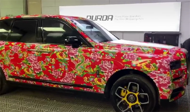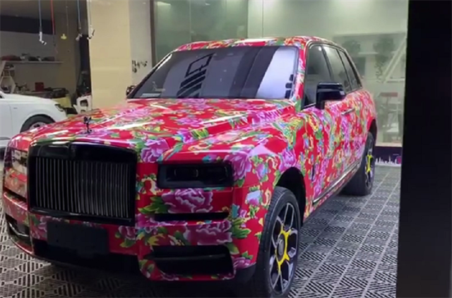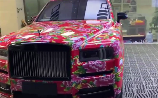 原来,这款劳斯莱斯全车贴膜的风格和东北的棉袄十分相似,虽然很俗气,但好歹这是一台百万级别的豪车,上街吸睛度还是很夸张的。