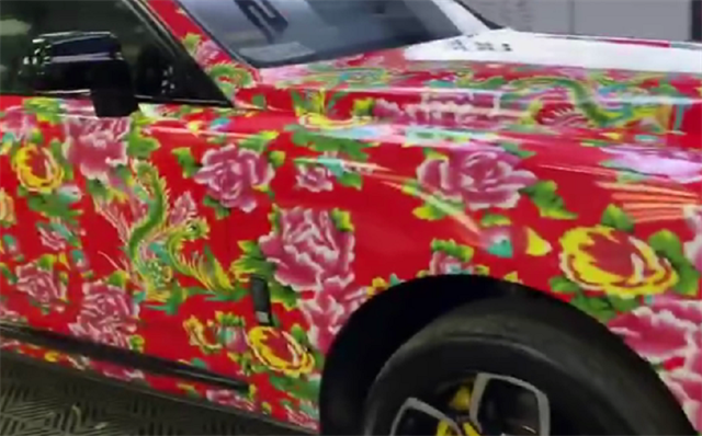 最近,在国内就有人实拍了一台东北大棉袄风格的库里南,全车贴膜花上万,看起来胡里花哨的。