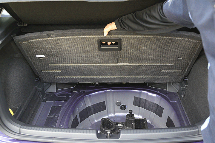 后厢空间则完全不变,与小改款前相同的标准容量仅有 351 公升,若将后座全数倾倒则可以扩充至 1,125 公升,对于一般单人使用或两人出游刚好够用,这也是这类小型掀背的标准。而原先后厢下方放置备胎的位置,则是仅有工具,周围的空间可扩充重低音喇叭,或是放置其它物品。没有置物厢的设计,是较可惜的一点。